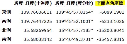 尚、X軸は北側, 南側、Y軸は東側, 西側の数字を使います。